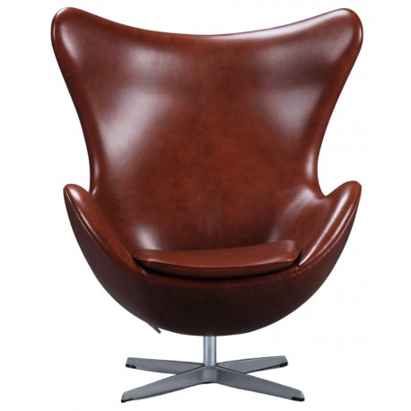 "Ägget" är klädd i en djup cognac-färgad semi-anilin läder, vilket är både mjukt och hållbart. Aluminiumbasen ger en modern elegans, medan den återgående sväng- och tiltfunktionen säkerställer att du alltid kan hitta en bekväm sittställning.